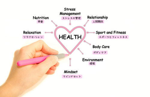・ボディケア(食事、運動、ストレス解消などによって体の健康を保つ。体の手入れをする)。