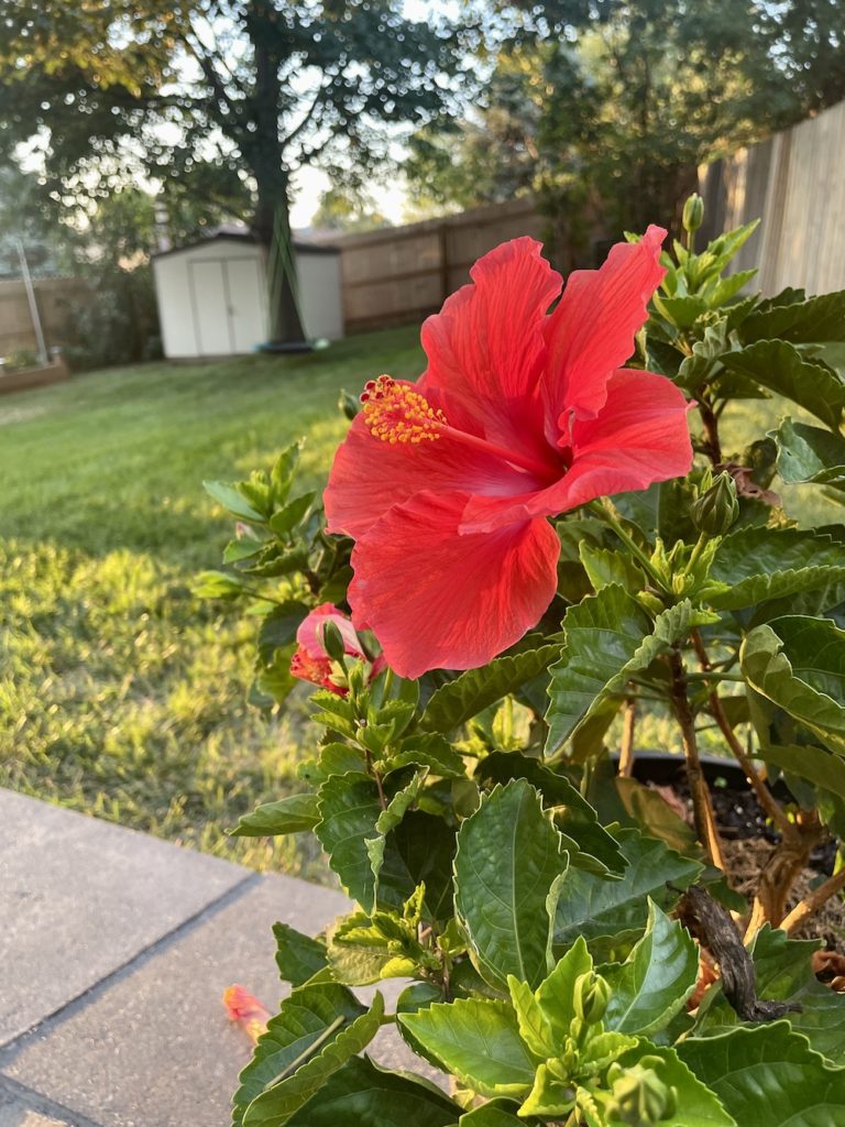 私の家の裏庭に咲いたハイビスカス。とても綺麗に咲いてます。