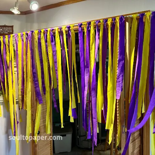 私の旦那が考えたアイディアで、その突っ張り棒を利用してペーパーガーランドテープでネクタイ結びをして、キッチンの窓に飾るということになりました(パーティーの日に飾った写真はありません)。