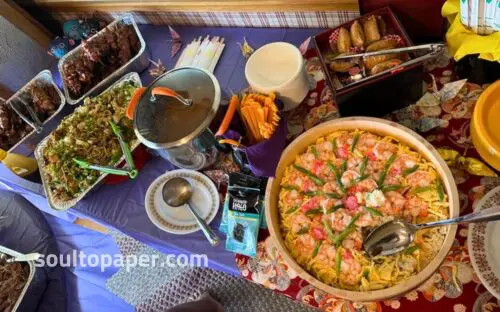 私とかまどさんで「どうせなら日本料理も作ろう!」ということになり、2つのテーブルを用意して、アメリカの家庭料理と日本料理のコーナーを作りました。