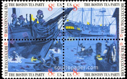 1973年にアメリカ郵便公社が発行したボストン茶会事件を主題とした切手