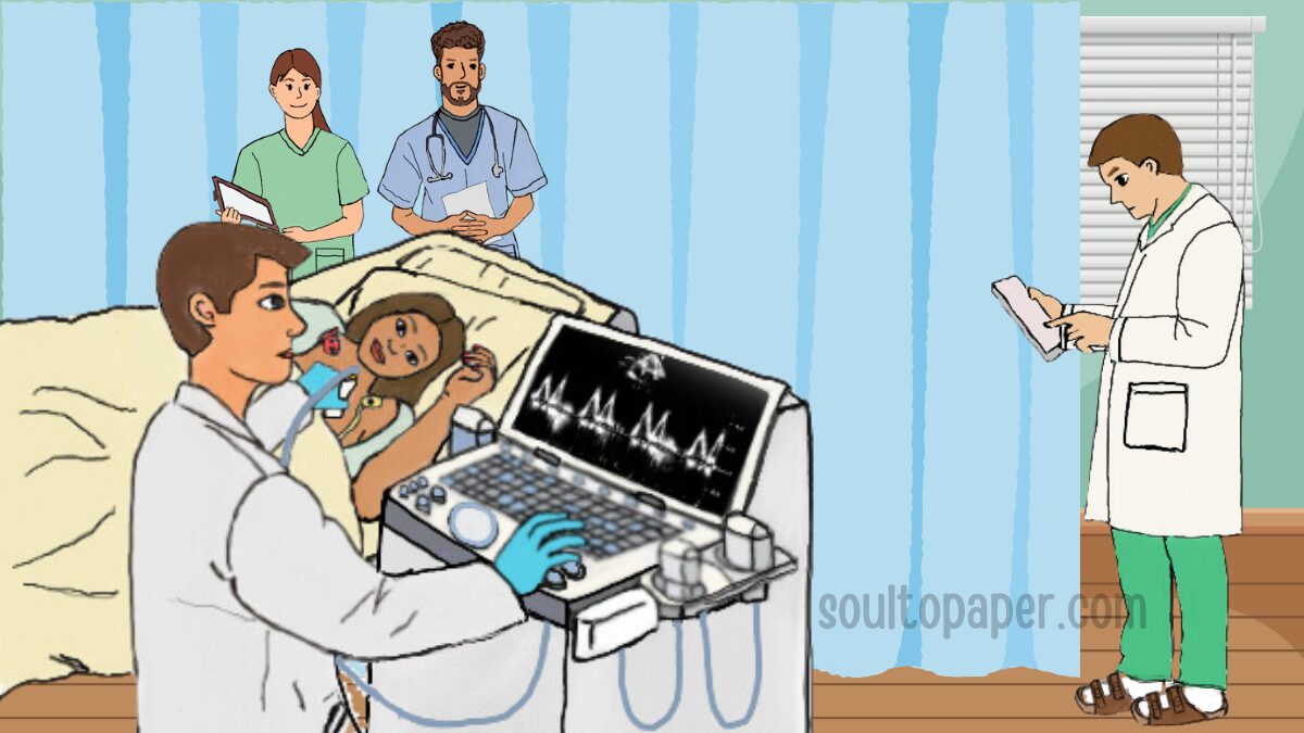 最初は通常の状態で、技術者がトランスデューサを配置して心臓の画像を取得していきます。
