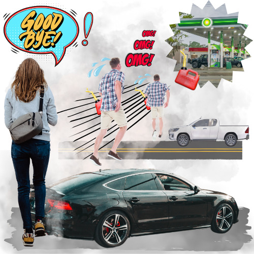 彼女は、「うん。それは分かってるよ。だから、何で車が止まったの?」って聞くと「ガス欠」だと、彼が言ったそうです。